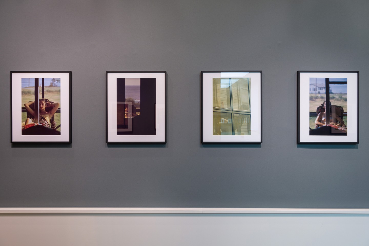 Etwa die eine Hälfte dieser Bildauswahl hängt gerahmt an der Wand, die andere liegt als Bildschnipsel, vom Fotografen selbst fragmentiert, in einer Ausstellungsvitrine. Diese winzigen Silberprints mit ihren amorphen Risskanten bilden dort gewissermaßen eine eigene, zweite Ausstellung en miniature. Teilweise sind es die gleichen Bildmotive, die etwas dunkler abgezogen, im vollen Format und weißen Passepartout an der Wand hängen, es sind aber auch Mode- oder Straßenaufnahmen inklusive eines Polaroids, also bekleidete Personen, die die Nacktheit an den Wänden des Ausstellungsraumes interessant kontrastieren. Zusätzlich werden die zehnteilige, zeitlose Farbbildserie einer halbnackten jungen Frau auf der Terrasse eines Hauses am Meer, aufgenommen 1958 in Lanesville, Massachusetts, sowie 15 von Leiters handkolorierte Schwarz-Weiß-Abzüge unterschiedlicher Formate gezeigt, die auf seine intensive Beschäftigung auch mit dem Medium Malerei verweisen. In seinem New Yorker Nachlass befinden sich auch zahlreiche abstrakte Gemälde, und das Übermalen der kleinformatigen Silbergelatineabzüge verwandelt das darunterliegende Bildmotiv gelegentlich ebenfalls in eine Farbabstraktion. So etwas wurde bisher noch nie in der Helmut Newton Stiftung ausgestellt. Doch in erster Linie sehen wir in diesem Ausstellungsteil kleinformatige Akt-Porträts einer oder mehrerer Frauen, die auf Sofas und Betten liegen oder im Gegenlicht zur Silhouette werden, die gedankenverloren rauchen, die sich mit größter Natürlichkeit an- oder auskleiden, die lächelnd oder verführerisch für Leiters Kamera posieren; dabei sind nicht alle Modelle nackt, doch dies macht in dem ausgewählten Bildkonvolut überraschenderweise kaum einen Unterschied. Es sind subtile, sensible, ja geradezu schüchterne Annäherungen an das Wesen und an den Körper der Frau.