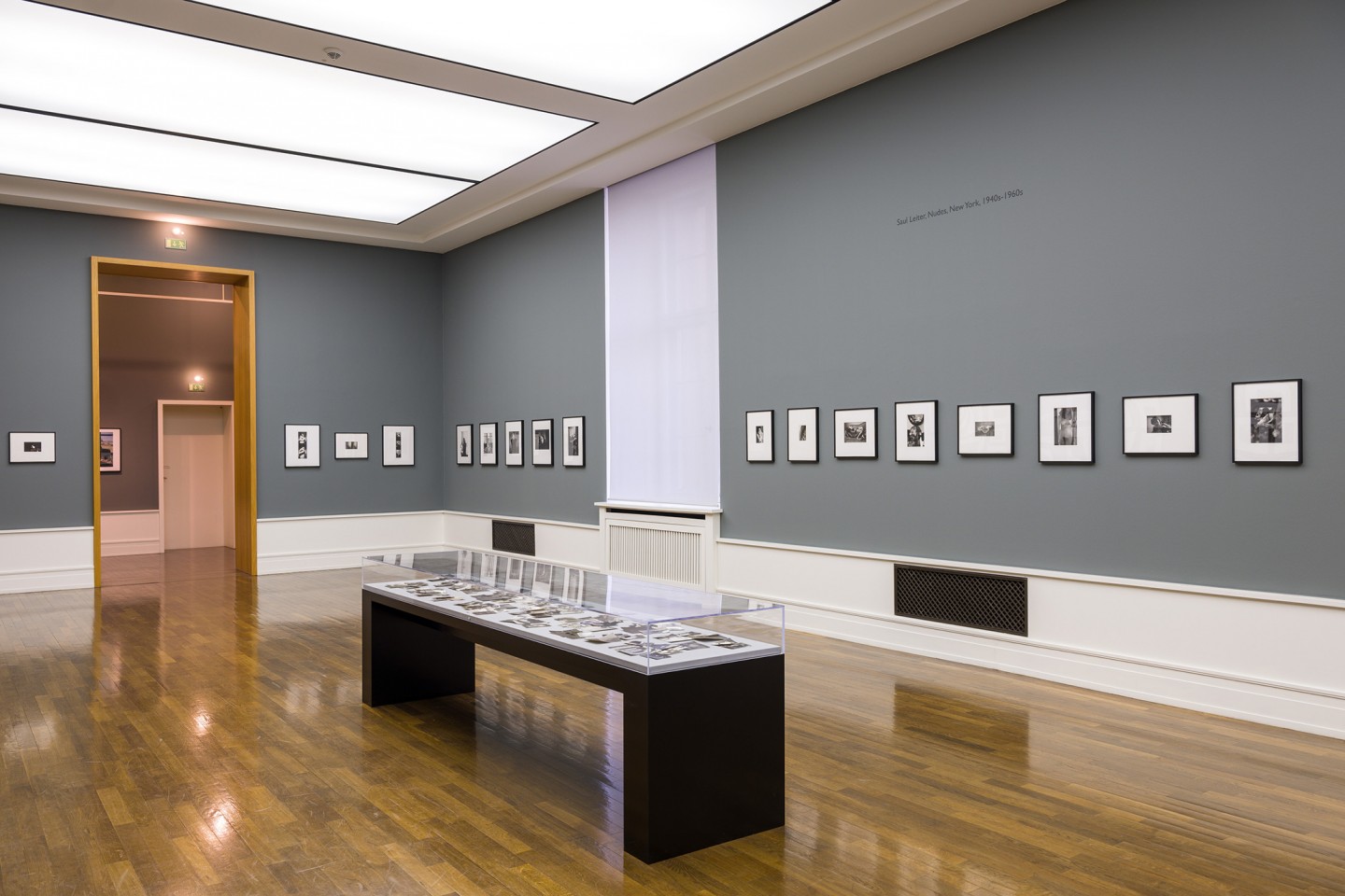 Saul Leiter (1923–2013) hat parallel zu seiner Modefotografie für Harper’s Bazaar und den Farbabstraktionen, die seit den 1950er-Jahren in den Straßen New Yorks entstanden, auch Aktbilder im Studio inszeniert. Diese stillen und intimen Schwarz-Weiß-Aufnahmen, die Leiter in der eigenen Dunkelkammer entwickelte, blieben zu seinen Lebzeiten gewissermaßen unter Verschluss, nur wenige Freunde kannten sie. Die weiblichen Modelle waren Freundinnen oder Geliebte des Künstlers, der sie in seiner New Yorker Wohnung, im gegebenen Raumgefüge und mit den vorhandenen Accessoires, porträtierte; es waren keine beauftragten professionellen Akt-Modelle. Sie kollaborierten geradezu verschwörerisch mit dem Fotografen und brachen das häufig so dualistische Prinzip von Voyeurismus und Exhibitionismus zugunsten eines spielerischen Miteinanders auf. Häufig blickte Leiter mit seiner Kleinbildkamera durch die Raumfluchten seines Studio-Apartments und marginalisierte die Frauen, die mit ihren Körpervolumina schließlich nur einen winzigen Teil der Gesamtkomposition ausmachten. Sonst sehen wir die nackten Körper über Spiegel gebrochen und fragmentiert, ähnlich wie surrealistische Künstler einige Jahre zuvor ihre Porträts inszenierten, oder Leiter fotografierte andere Modelle, auf Sofas liegend, als würde er Aktgemälde von Pierre Bonnard zitieren. Saul Leiter kannte sich sehr gut in dessen Werk wie auch grundsätzlich in der Kunstgeschichte aus – und schien manche ikonische Aktmalerei mal subtil, mal unmittelbar ins Medium Fotografie übersetzen zu wollen.