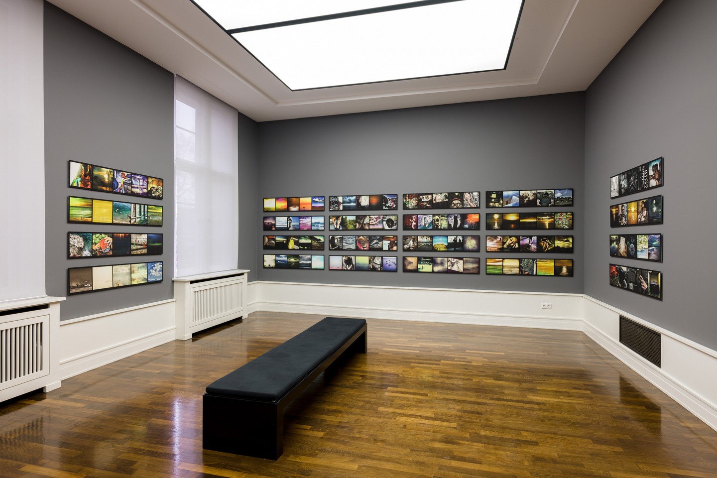 Fünf Farbbilder von Marino wurden nun zu einem länglichen Tableau angeordnet, das jeweils repräsentativ für eine Woche des Jahres steht, insgesamt sind es also 52 Panels beziehungsweise 260 Einzelbilder. Und so wird in „June’s Room“ die Veränderung der Lichtverhältnisse im Wechsel der Jahreszeiten sichtbar; jedes Einzelbild charakterisiert und symbolisiert einen Tag, die Fahrt von einem Ort an einen anderen, kurzum: das Unterwegssein, hier manifestiert in subjektiv gewählten, flüchtigen Realitätsschnipseln.