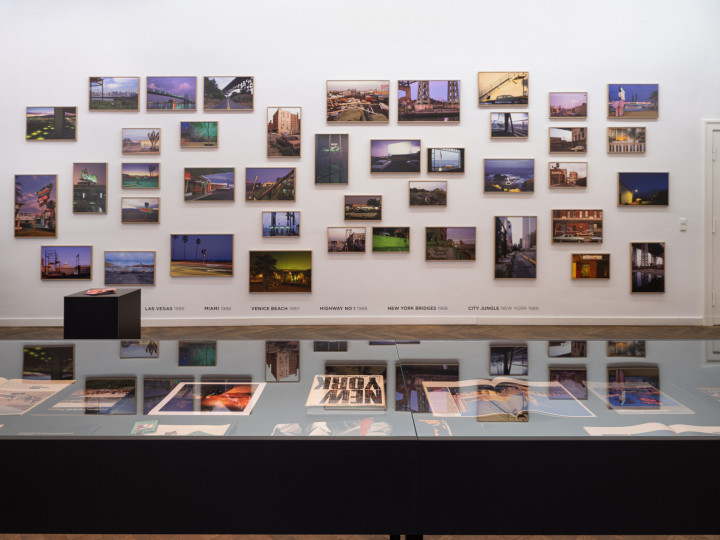 During this time, the magazine of the Frankfurter Allgemeine Zeitung (FAZ) became Erfurt’s client, buying his photographs and photo essays documenting the streets and restaurants of the legendary cultural melting pot and his travels across the vast country. Whether in New York, Miami, Las Vegas, or Los Angeles, he produced well researched, nuanced reportages for the FAZ magazine, often accompanied by texts by Jordan Mejias. The Wall Street series from 1985, for example, thrives on its sharply drawn contrasts of light and dark. The black-and-white images were taken with Polaroid slide film on a Sunday morning; the otherwise bustling metropolis seems completely deserted. Structures and traces in the asphalt, wandering points of light reflected by the surrounding skyscrapers, and cars parked at the side of the road populate the deserted, almost dystopian situation. Intensive discussions with photographer Evelyn Hofer at the time inspired Erfurt to explore this topic in his work. In his series New York Restaurants, created around the same time, we encounter a few people, but mostly they disappear into a timeless, atmospheric blur. Everything becomes a stage in Erfurt’s early black-and-white photographs, almost as if Samuel Beckett himself had played a role in directing them. But a year later, the photographer was bathing everything in color, inspired by fellow photographer Joel Meyerowitz. This new direction can be seen in a second New York restaurant series – Erfurt’s first job for FAZ magazine – and also in a series taken shortly thereafter in Miami, imbued with the city’s characteristic pastel Art Deco color scheme. In a series he shot in Las Vegas, also in 1986, the colors become clearer, less fragmented. In those photographs, the light of the sky is as brilliant as the colorful neon signs of the city’s motels and casinos. Erfurt was among the first photographers to equally combine these two elements – natural and artificial light – within the same image, and to fully exploit the creative possibilities of color slide film. This aspect, too, links him to Joel Meyerowitz – whose photographs of Provincetown from the 1970s and ‘80s, with their intense local colors, are being shown publicly for the first time on the first floor of the museum. Erfurt’s twilight shots, in which he was able to demonstrate his masterful handling of a broad spectrum of lighting situations, became his specialty.
