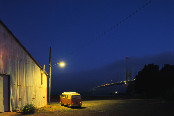 Stephan Erfurt told his authentic stories from and about America preferably in small poetic sequences. Some of these images were so iconic that they were picked up by Suhrkamp Verlag to adorn the cover of several books by Max Frisch and Harry Matthews. In 1988, Erfurt took a road trip an old VW camper van along the legendary Highway No. 1 from Los Angeles to San Francisco. His orange van with its white roof – a throwback to the hippie era and road movies – stars in nearly every photograph as a unifying motif, and ultimately made it onto the cover of FAZ magazine. Erfurt also submitted this photo series as his final project at the art academy in Essen.